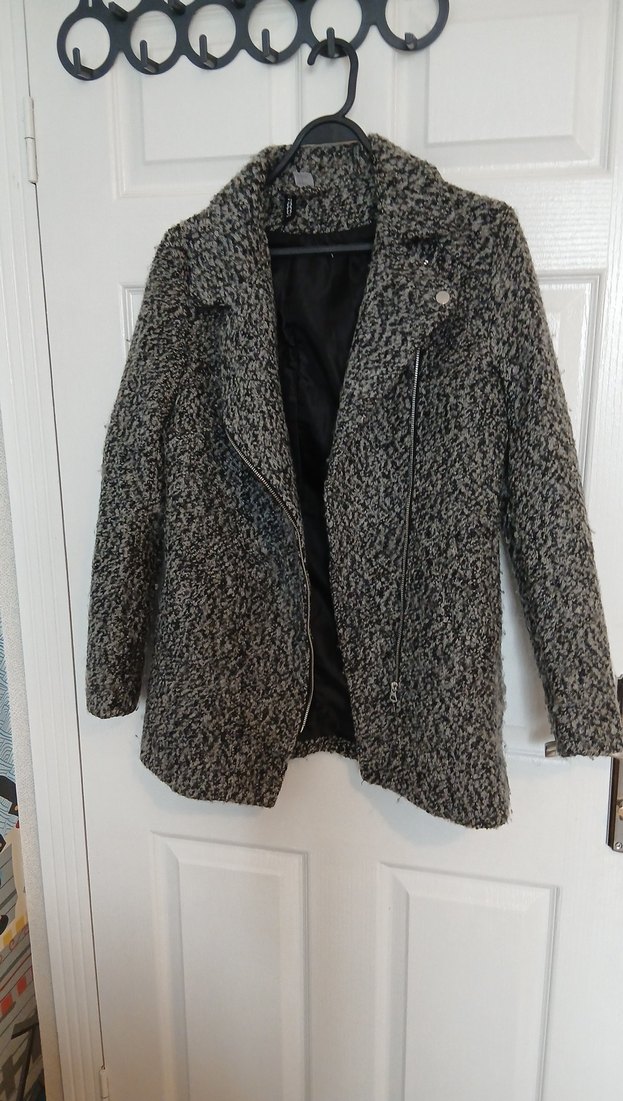 Gri yün kumaştan, fermuarlı ve kesimli, uzun kollu midi kaban Günlük rahat sokak tarzına uygun.