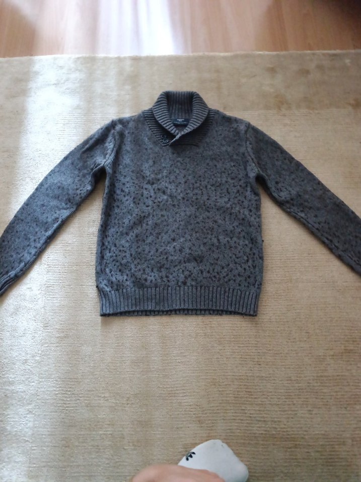 Gri yünlü triko kazak, yakalı ve uzun kolludur. Rahat kesimi ve örme dokusu ile günlük kullanıma uygundur. temiz kullanılmıştır ben s benden olduğum için giyorum s ve xs beden için uygundur