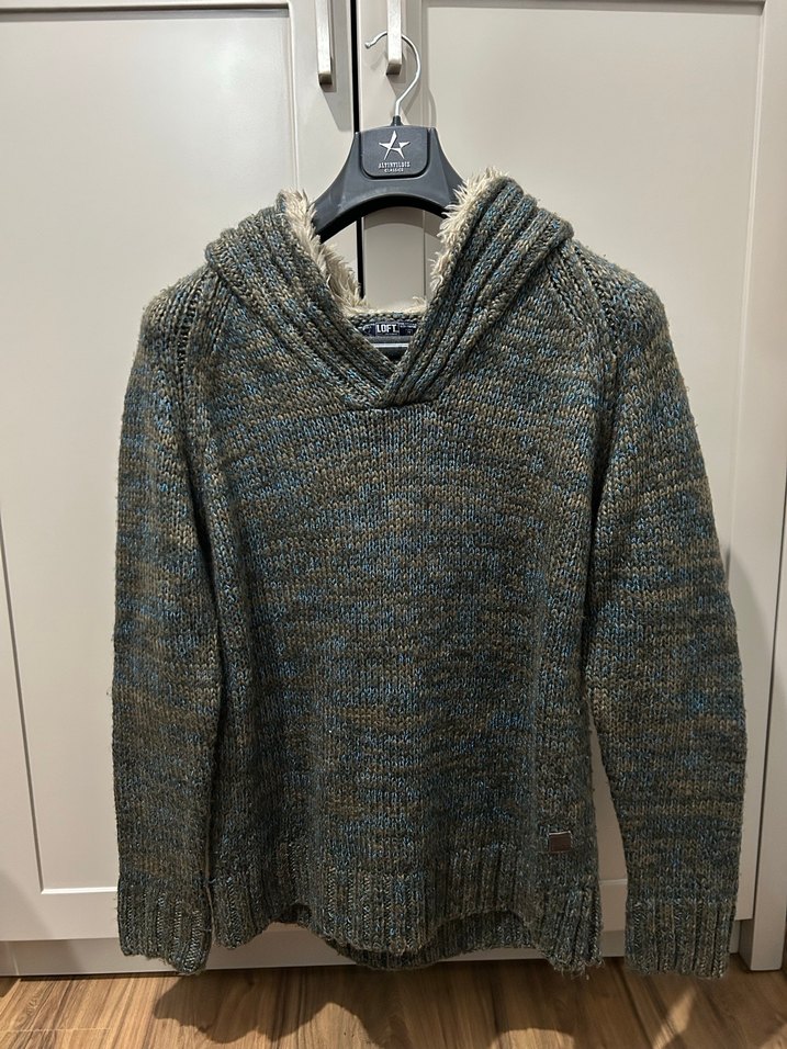 Gri renkte yün örme erkek kazak, yüksek yakalı ve uzun kolludur. Salaş kesimi ve normal boyu ile günlük rahat kullanıma uygundur. Orijinal ürün. Çok tarz bir duruşu var. Yün ip örmesi. Dirsek arkalarında yama modeli var. Kapüşonlu ve kapüşon içi yün tüylü
