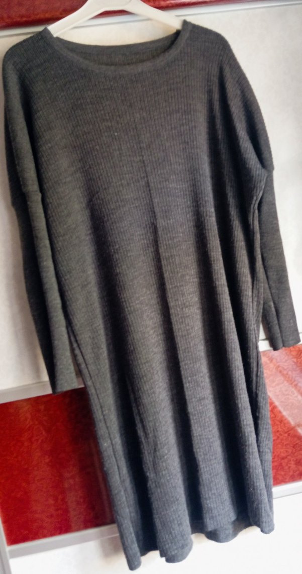 Yumuşak yün kumaştan, bol kesim, uzun kollu, yüksek yakalı gri triko elbise. Günlük rahat kullanım için sade ve konforlu tasarım. hafif tüylenme var onun harici iyi durumda 38 beden ile uyumlu :)