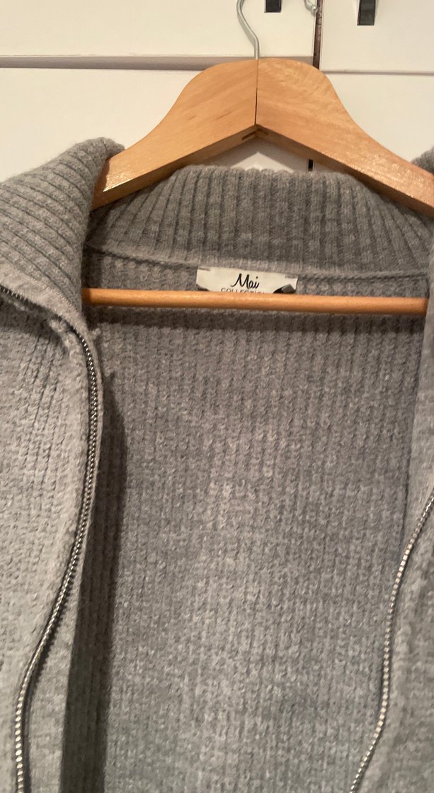 Gri renkte, yün örme kumaştan yapılmış, yüksek yakalı ve uzun kollu, vücuda oturan kadın kazak. Günlük kullanıma uygundur. Fermuarlı hafif tüylenme var