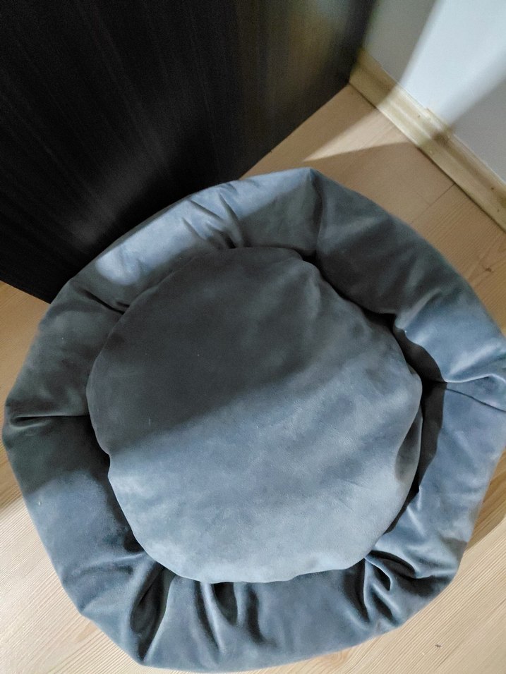 Yumuşak dokulu, desensiz gri yuvarlak kedi yatağı