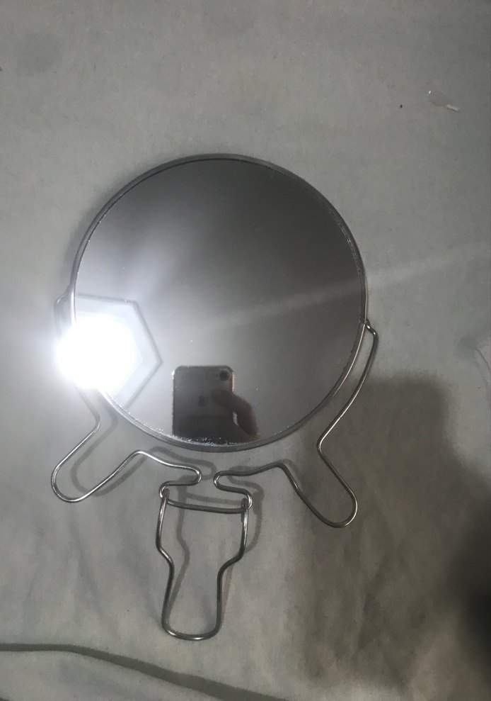 Gri metal çerçeveli,sade ayna istediğiniz eğimde oturtabiliyorsunuz altı ayarlanıyor kenarlarına oyuncak yapıştırmak için ideal belli olmuyor ama bir tarafı büyüteçli bir tarafı normal aynadır yerinden çıkararak da kullanabilirsiniz tekliflere açığım