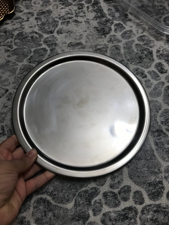 Gri renkte, metalden yapılmış yuvarlak kek kalıbı. Pürüzsüz yüzeyli ve sade tasarıma sahip.