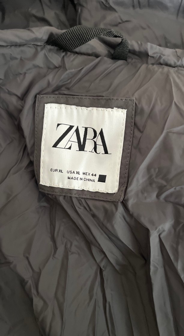 Gri renkli Zara erkek rozeti, street wear tarzında, yenilikçi ve modaya uygun. EUR XL, USA XL, MEX 44 beden bilgisi içerir, Çin'de üretilmiştir. Baya geniş kalıp