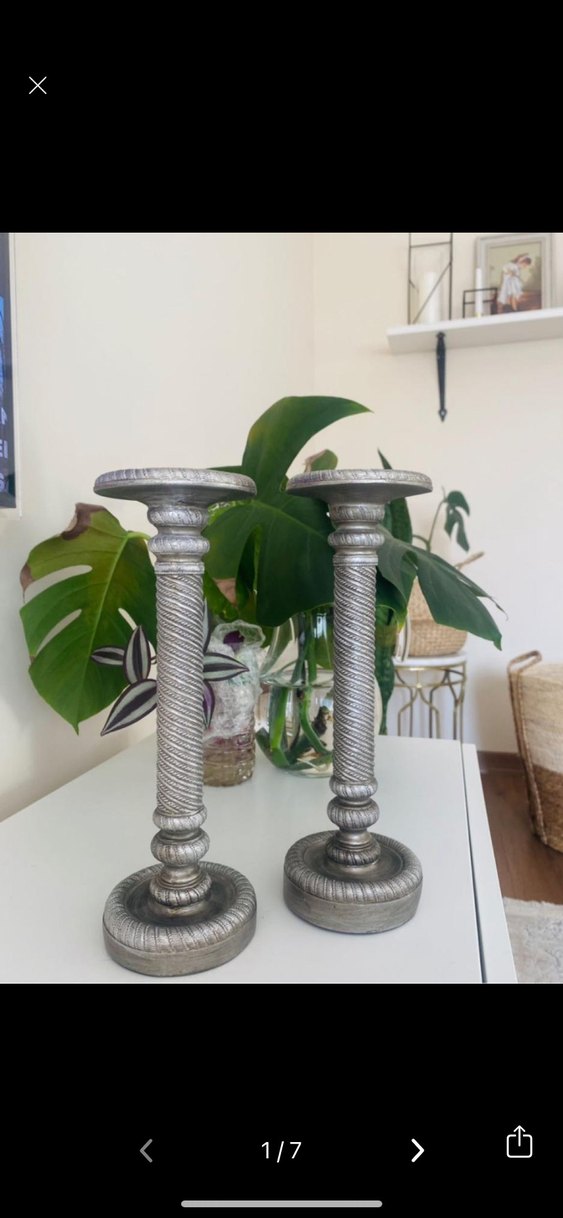 Bu set, dokulu spiral tasarıma sahip iki gri metal mumluktan oluşur ve her odaya klasik bir dokunuş katar. Fazla kullanılmadı.