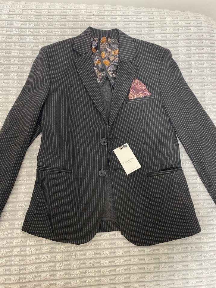 Gri zebra desenli erkek ceket, düğmeli ve normal kesimdir. Uzun kollu, ofis ve günlük kullanım için uygundur. İç kısmı desenli ve mendil detaylıdır.