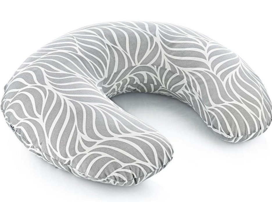 Gri zebra desenli hamile ve emzirme yastığı, rahat destek sağlar.