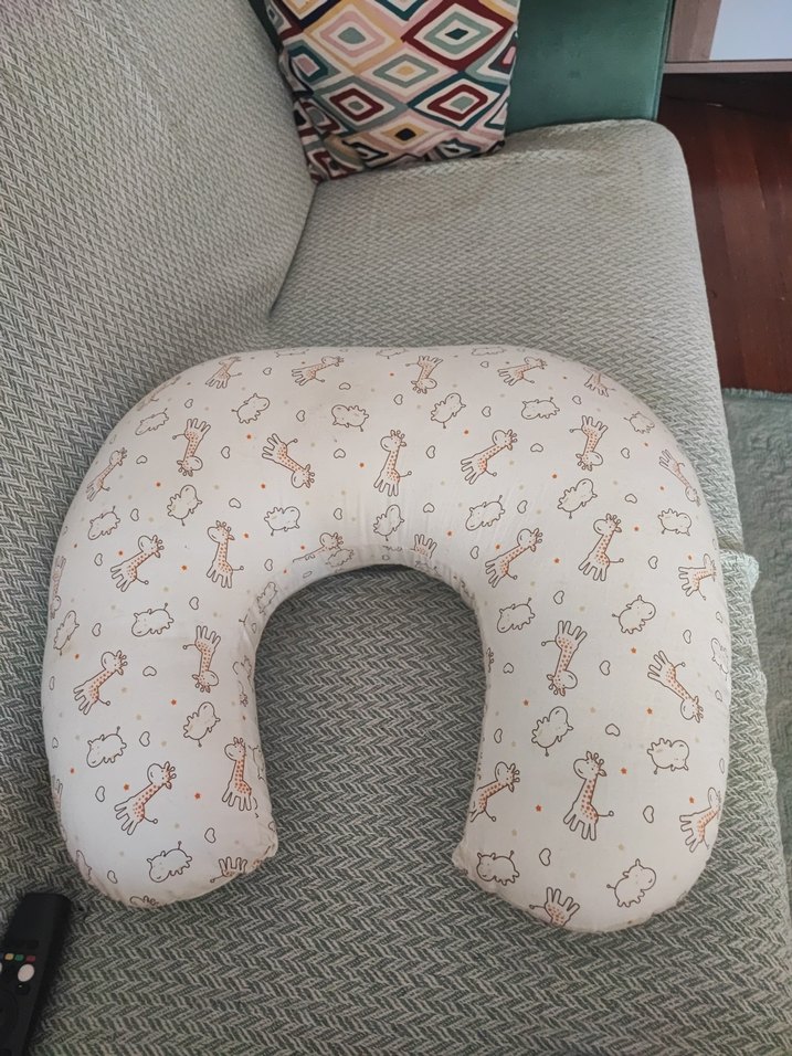 Hamilelik ve emzirme için tasarlanmış, gri zebra desenli konforlu yastık.
