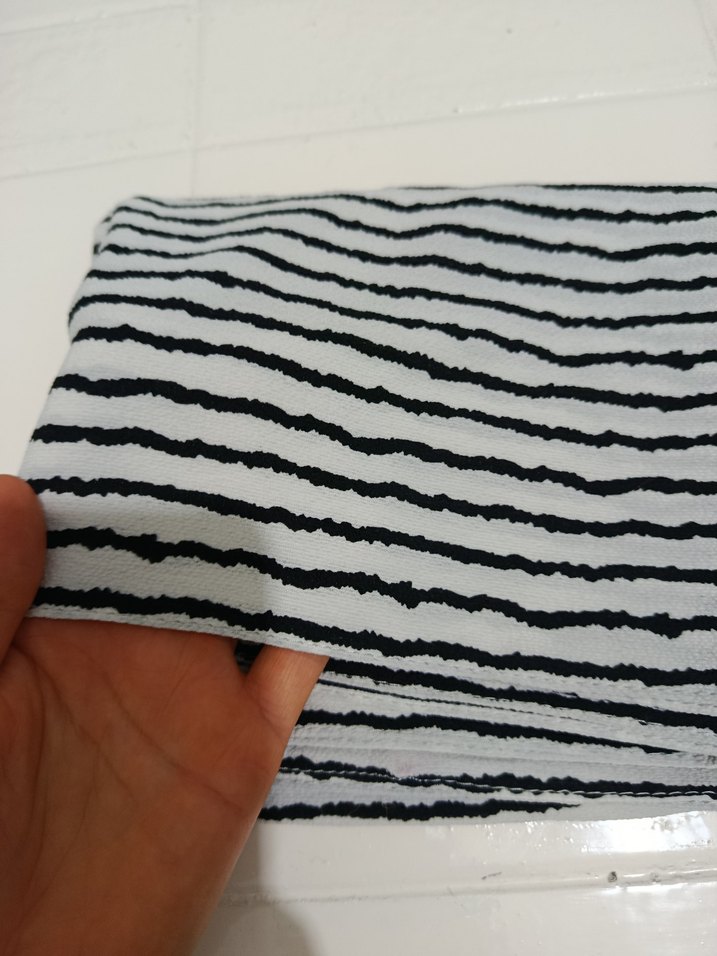 Gri zebra desenli, pliseli dokuda kısa uzunlukta erkek plaj havlusu. Minimalist ve avangart tarzı yansıtır.