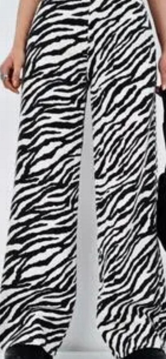 Gri zebra desenli, , rahat kesim kadın midi pantolon. sokak stili ve günlük kullanım için uygundur.