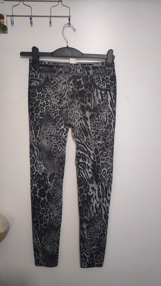 Gri zebra ve hayvan desenli, cepler desendir gerçek değil. tayt