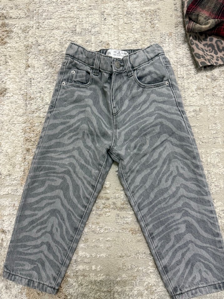 Gri zebra desenli Kiz çocuk kot pantolon, , regular fit ve streetwear tarzında.