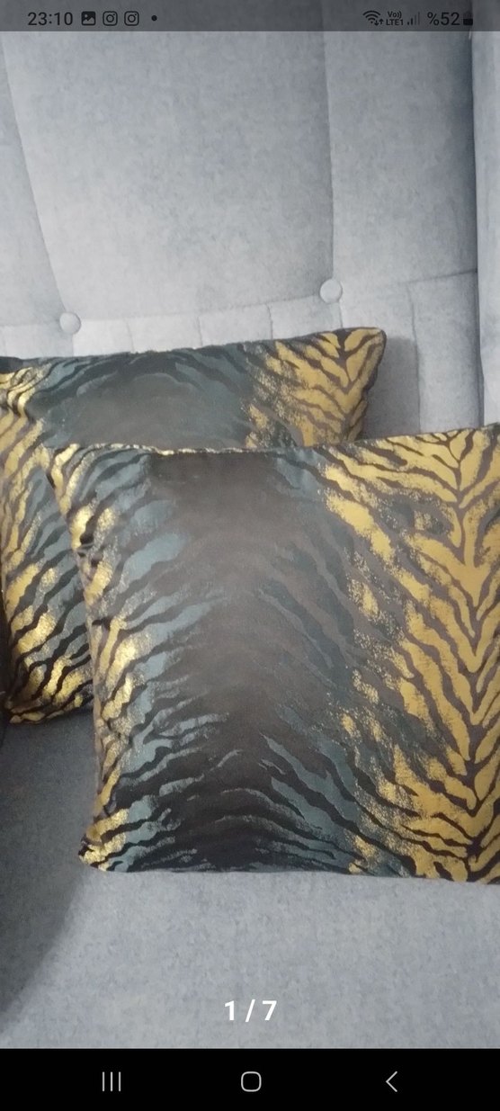 Koyu gri zemin üzerine modern zebra desenli, şık ve dekoratif yastıklar. Oturma alanlarına özgünlük katar. ️ fazla kullanmadım yeni durumda sadece kılıfı satıyorum