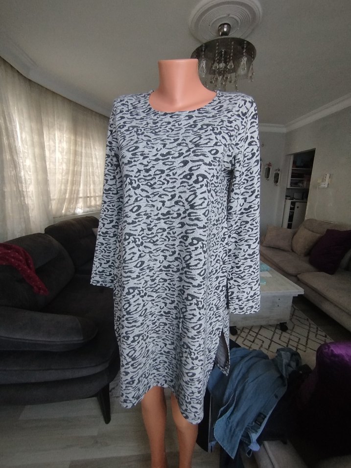 Gri Zebra Desenli Örgü Kadın Elbise tünik