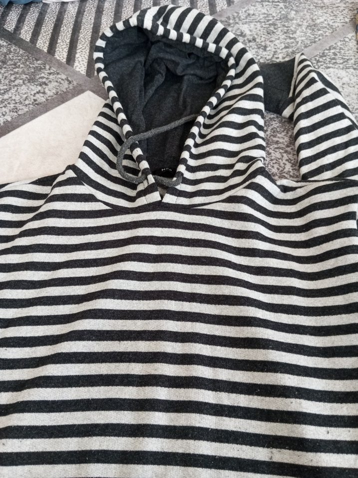 Gri Zebra Desenli Örgü Kedi Kapüşonlu Tişört