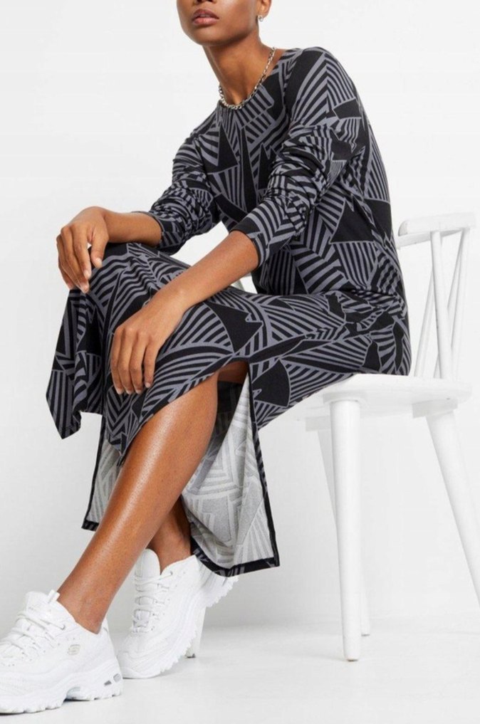 Yanları yırtmaçlı desenli midi boy rahat ve spor elbise et gibi esnek yumuşacık viskon penyeden rahat kalıp esnek ürün