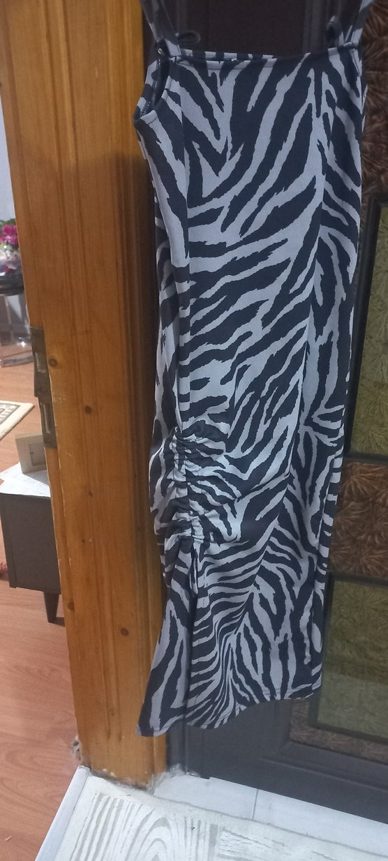 Sentetik kumaştan, gri zebra desenli Günlük kullanıma uygun, fit kesimiyle modern ve trend bir görünüm sunar yırtmaçı ayarlanabiliyor