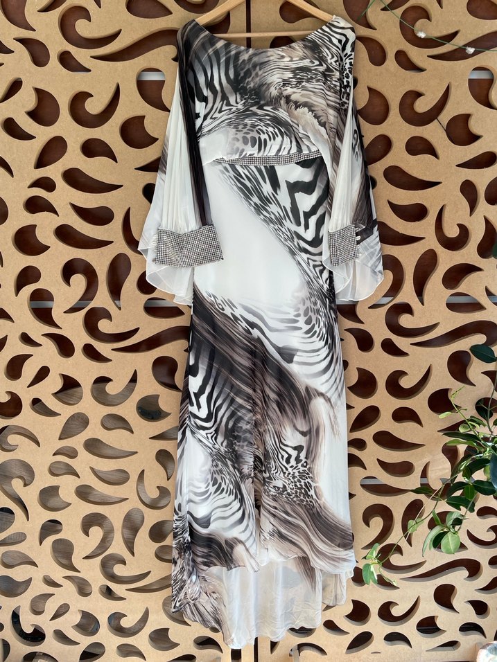 Gri Zebra Desenli Uzun Salaş Elbise