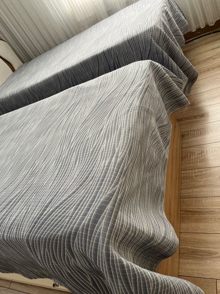 Yumuşak dokulu, gri zebra desenli yatak örtüsü, yatak odasına zarif bir stil katıyor. ️