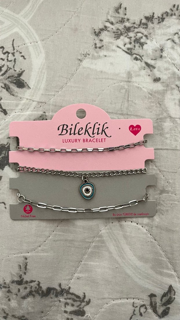 Gri zincir detaylı ve figürlü bileklik seti, rahat ve bohem tarzı rock punk ile buluşturuyor. Günlük kullanıma uygun. Hiç kullanılmadı.