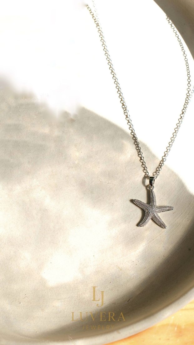 Gri Zincir Detaylı Deniz Yıldızı Kolye