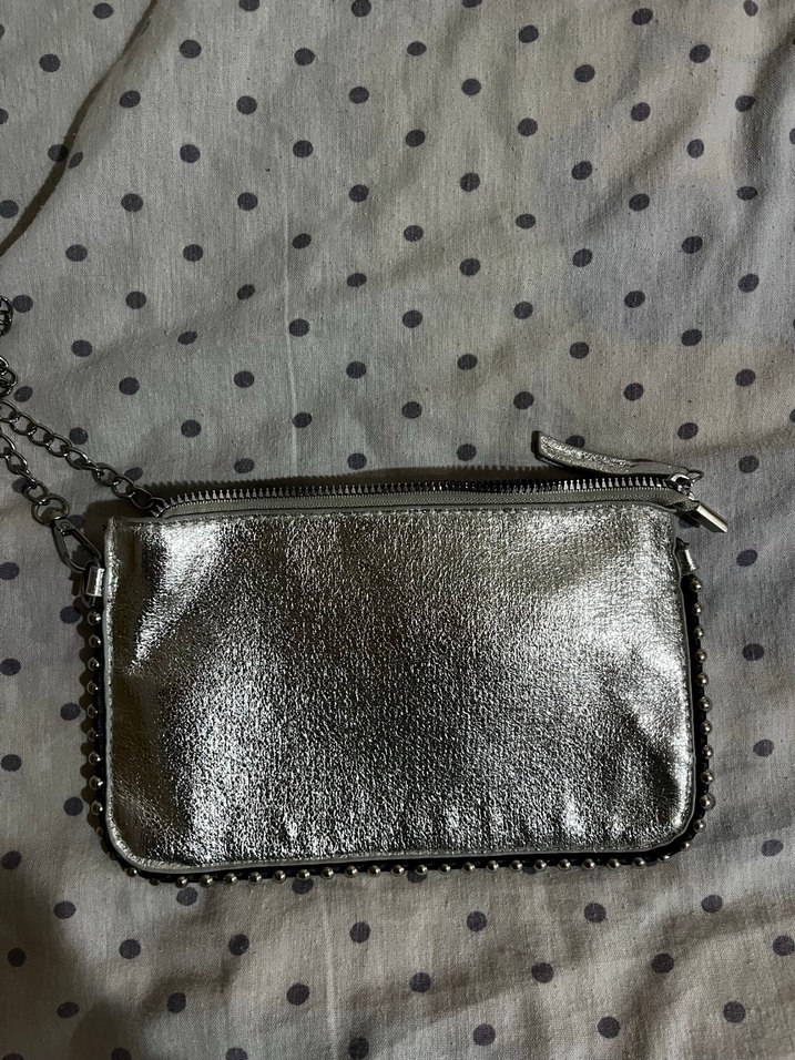 Gri Zincir Detaylı Deri Punk Kadın Çanta