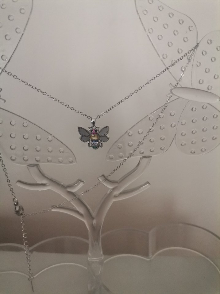 Gri renkli, zincir detaylı gotik tarzda, baskılı kelebek figürlü midi uzunlukta kolye. Günlük kullanıma uygundur.
