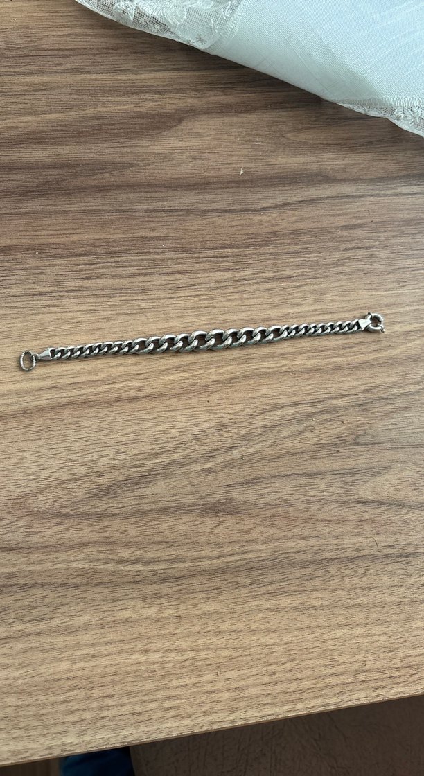 Gri renkte, zincir detaylı minimalist kadın bileklik. Günlük kullanıma uygun, sade ve özgün bir tasarıma sahiptir. ⚡