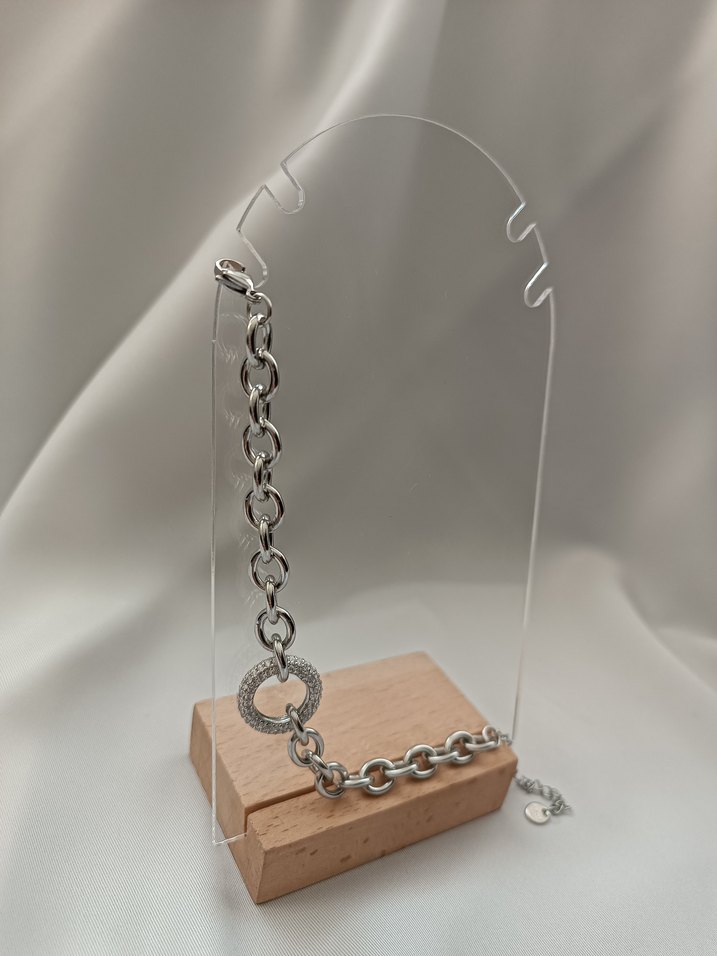 Gri Zincir Detaylı Kadın Bileklik Çelik