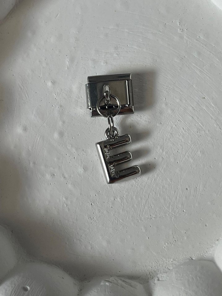 Parlak gri renkte, zincir detaylı ve nakışlı desenli kadın charm. Minimalist ve rock punk tarzını yansıtır, günlük kullanıma uygun. ✨
