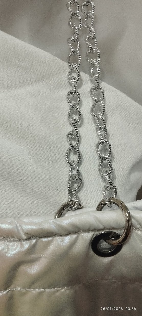 Zincir detaylı, gri yılan desenli kadın el zinciri. Minimalist ve çağdaş tasarımıyla günlük kullanıma uygundur.