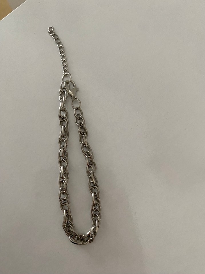 Günlük kullanıma uygun, detaylı halkalara sahip minimalist gri kadın el zinciri. Desensiz ve karşı kültür tarzında bir tasarım. ✨