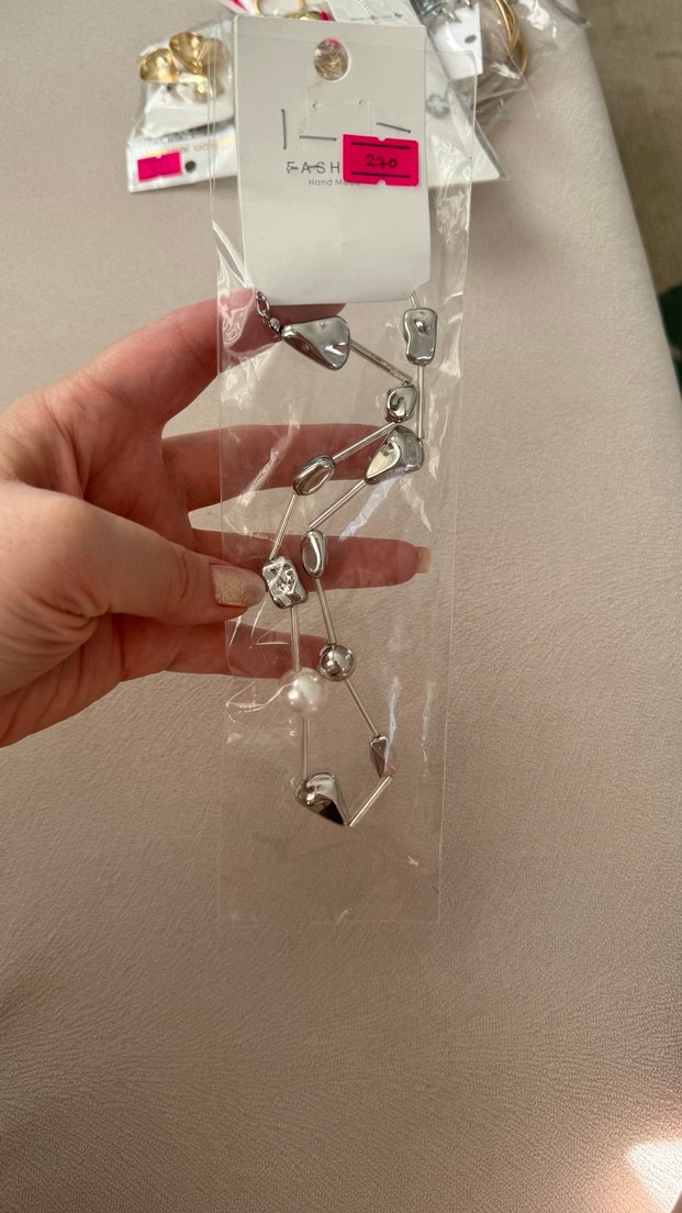 Gri zincir detaylı, tek inci süslemeli kadın el zinciri, günlük kullanıma uygun çağdaş bir tasarıma sahiptir. ✨