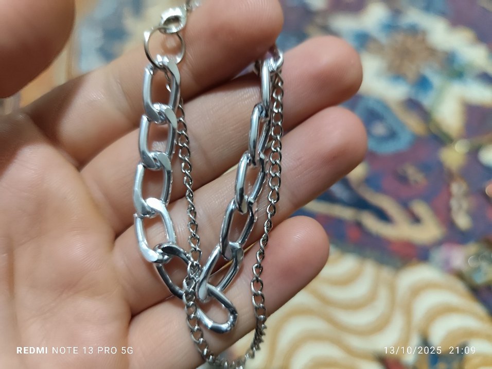 Gri tonlarında, zincir detaylı kadın el zinciri. Minimalist rock punk tarzını yansıtır, günlük kullanıma uygundur. Üzerinde⚡