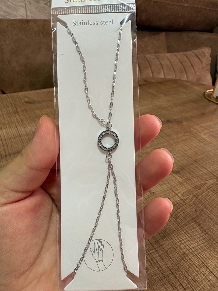 Bohem tarzda, zincir detaylı kadın el zinciri. Paslanmaz çelikten üretilmiş, bej ve gri tonlarında, günlük kullanıma uygun minimal ve retro görünümlü.