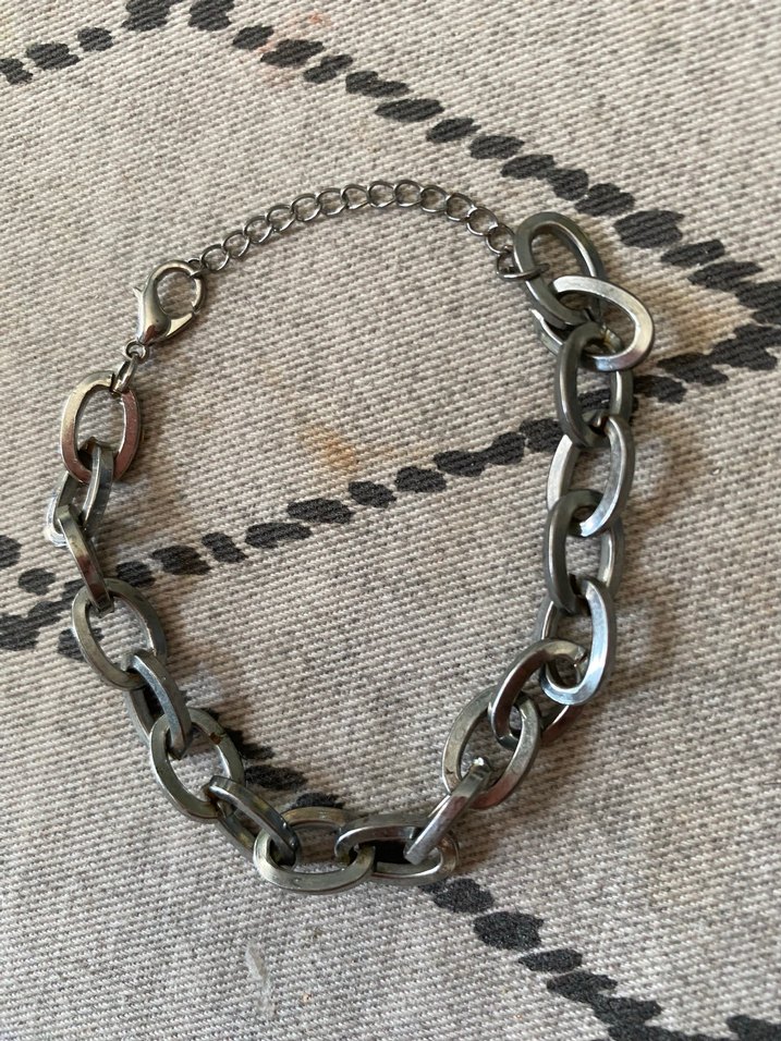 Gri renkli, zincir detaylı kadın el zinciri. Yılan desenli ve günlük kullanıma uygun, trend sokak stiliyle uyumlu.