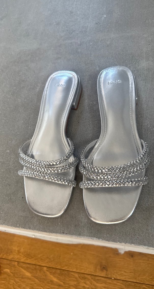 Gri blok topuklu kadın terlikler, payetli bantları ve şık metalik görünümüyle zarif davetlere uygundur. Bir defa giyindim temiz deformesizdir
