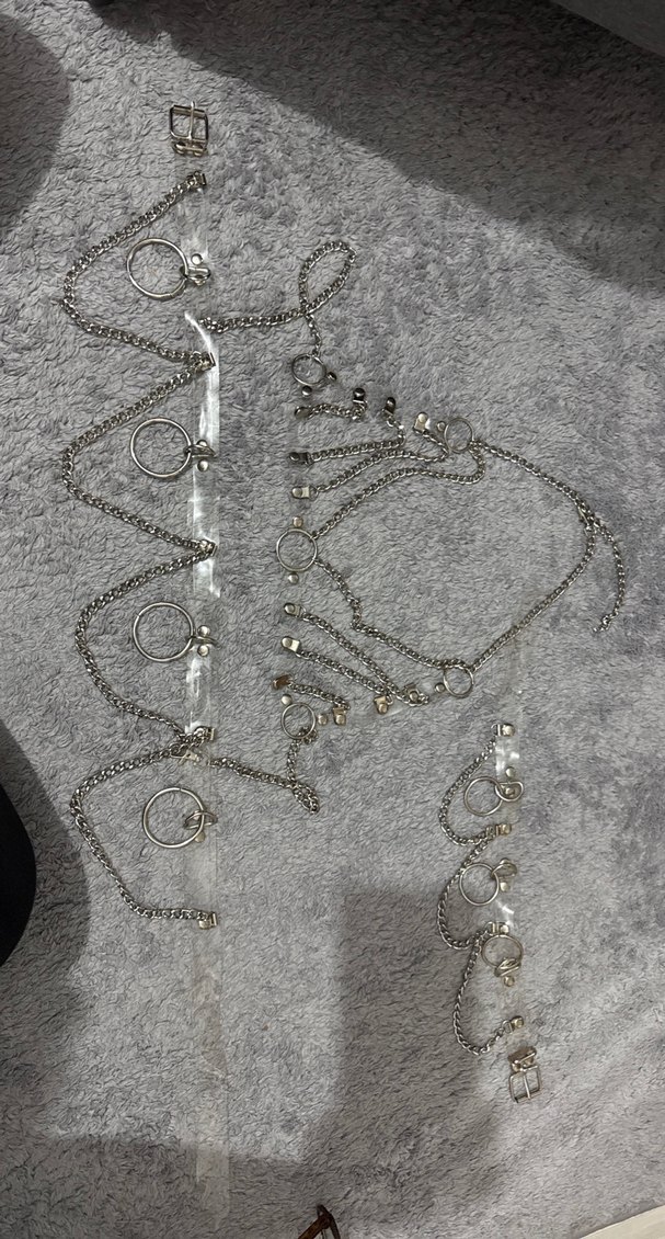 Gri renkli, zincir detaylı kadın vücut zinciri, işleme detaylarıyla avant-garde tarzlar için uygun.