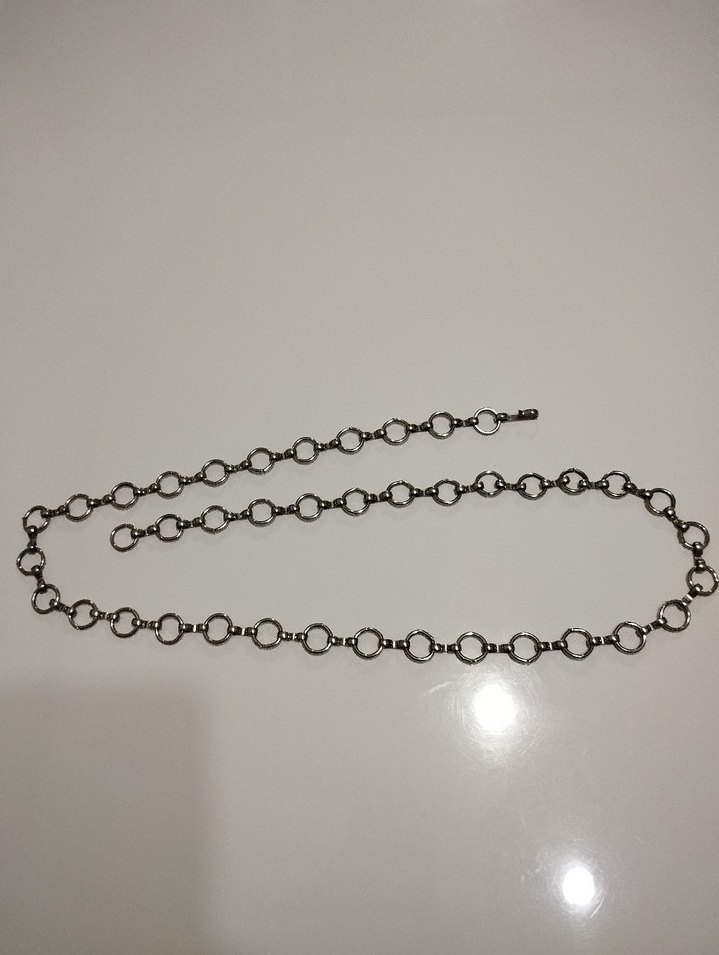 Minimalist tarzda, detaylı gri zincir halkalarından oluşan, goth stilinde kadın vücut zinciri. Günlük kullanıma uygundur. ⚙️