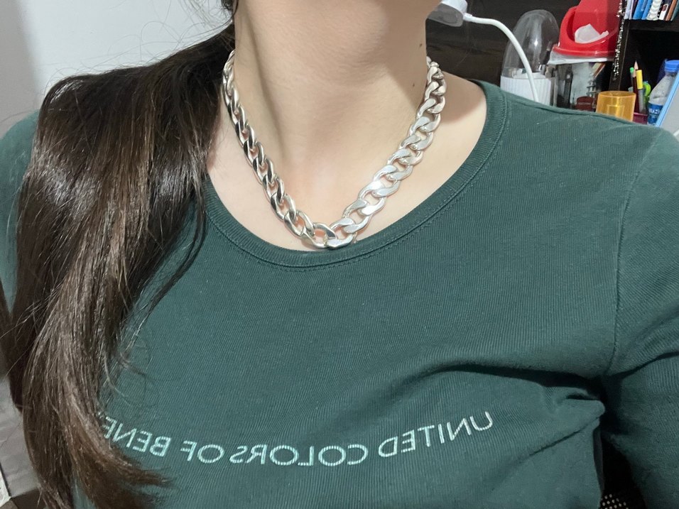 Parlak gri zincir detaylı, midi boyda, sokak stili için uygun günlük kullanıma ideal unpatterned tasarıma sahip kadın kolye. ✨