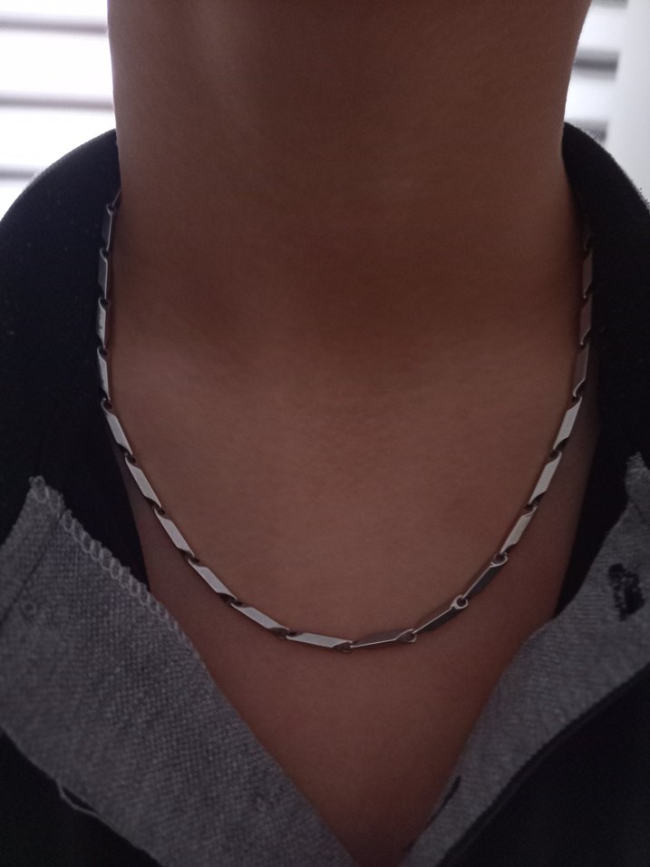 Gri renkte, zincir detaylı midi boy kadın kolye. Minimalist tarzda, günlük sokak modasına uygun sade ve şık tasarıma sahiptir.