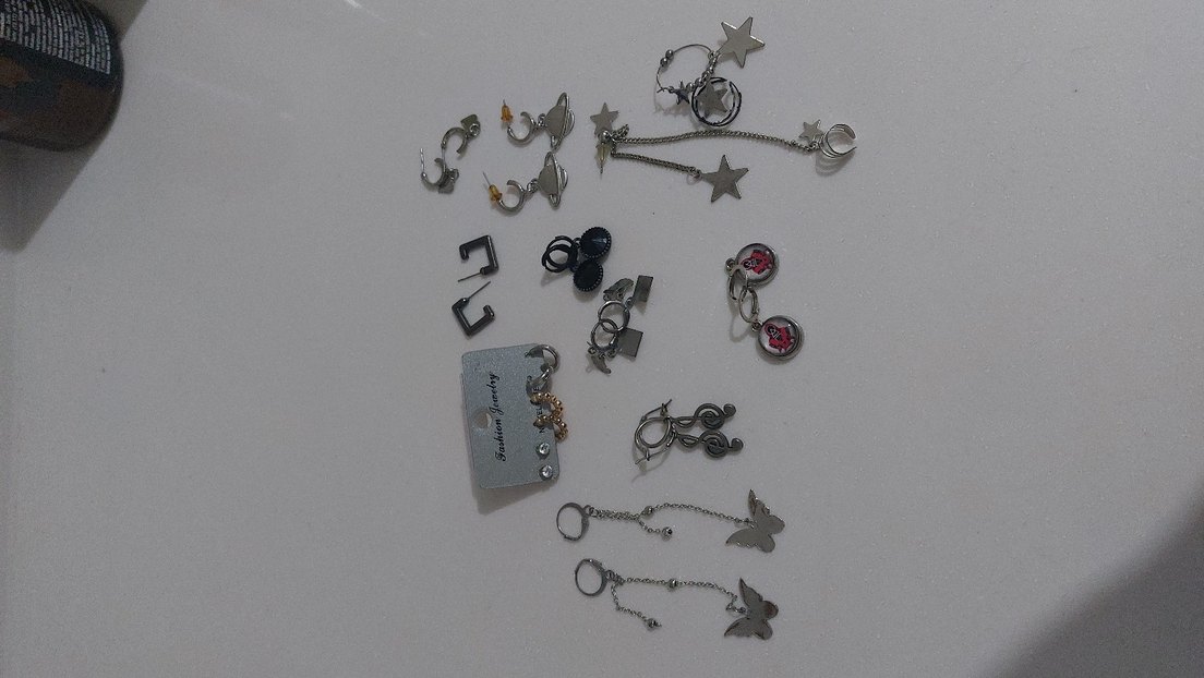 Gri renkte, zincir detaylı midi uzunlukta kadın küpeleri, counterculture grunge punk tarzında, günlük kullanıma uygun.