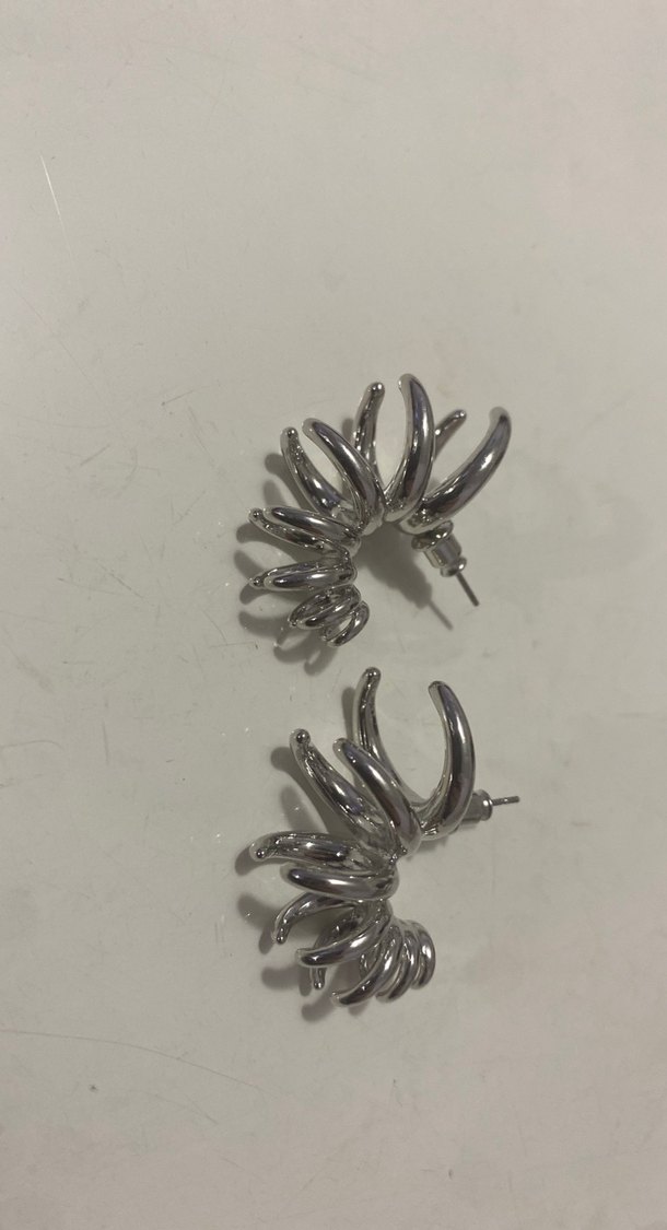 Gri renkli, yılan desenli zincir detaylı midi küpeler, avangart tarzı sevenler için ideal.