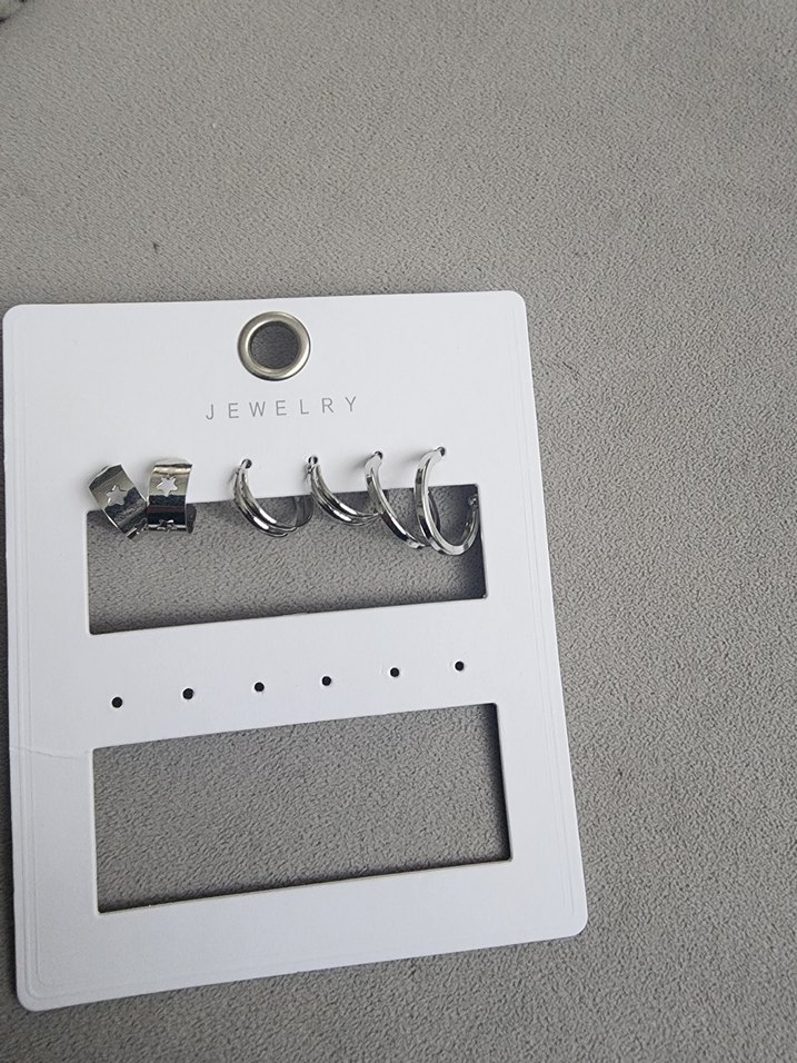 Gri Zincir Detaylı Mini Kadın Küpe Seti