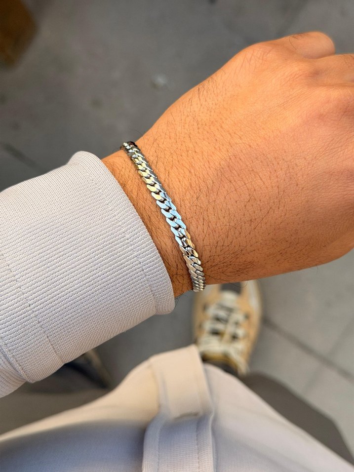 Gri renkli, zincir detaylı ve yılan deseniyle günlük kullanıma uygun minimalist bileklik.