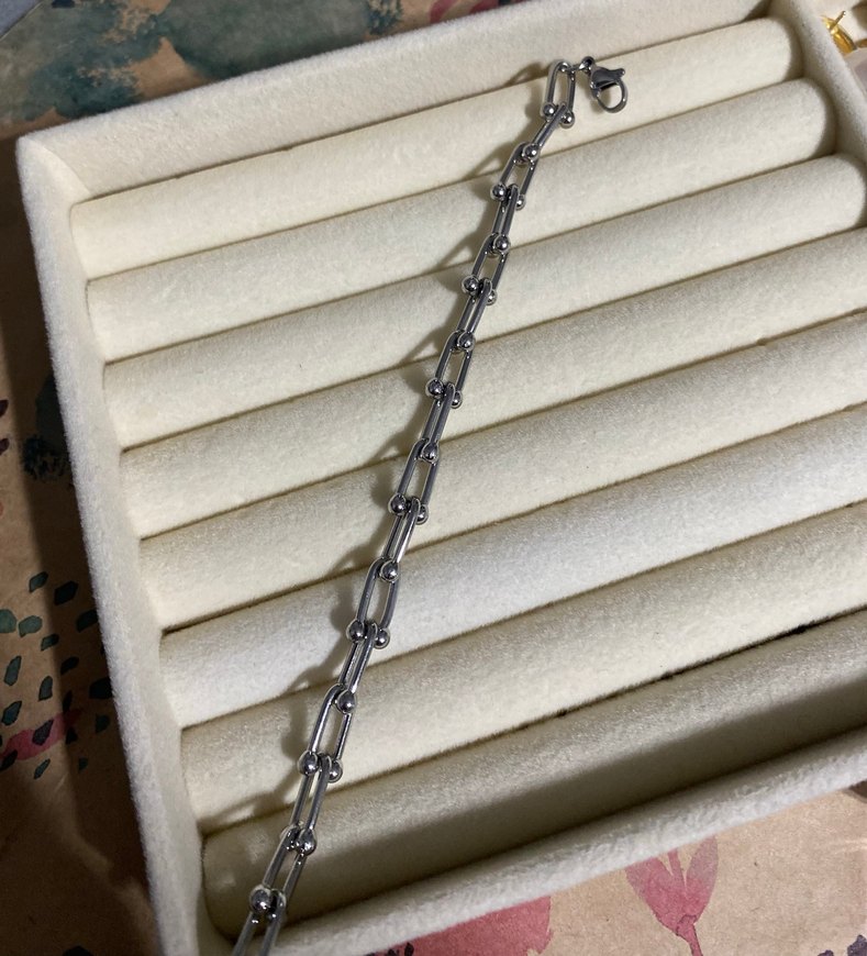 Gri zincir detaylı, desen içermeyen minimalist tarzda kadın bileklik, günlük kullanım için uygundur. ️