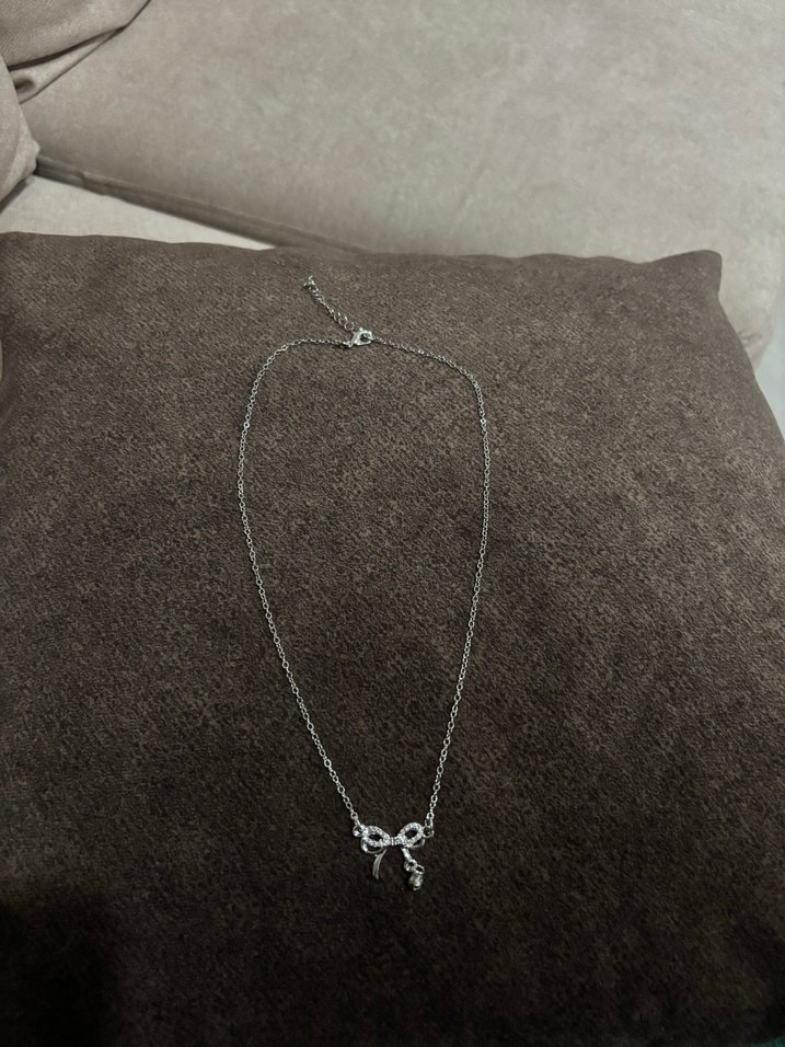Gri renkte, zincir detaylı ve midi uzunlukta minimalist kolye. Günlük sokak stiline uygun sade ve desensiz tasarım.