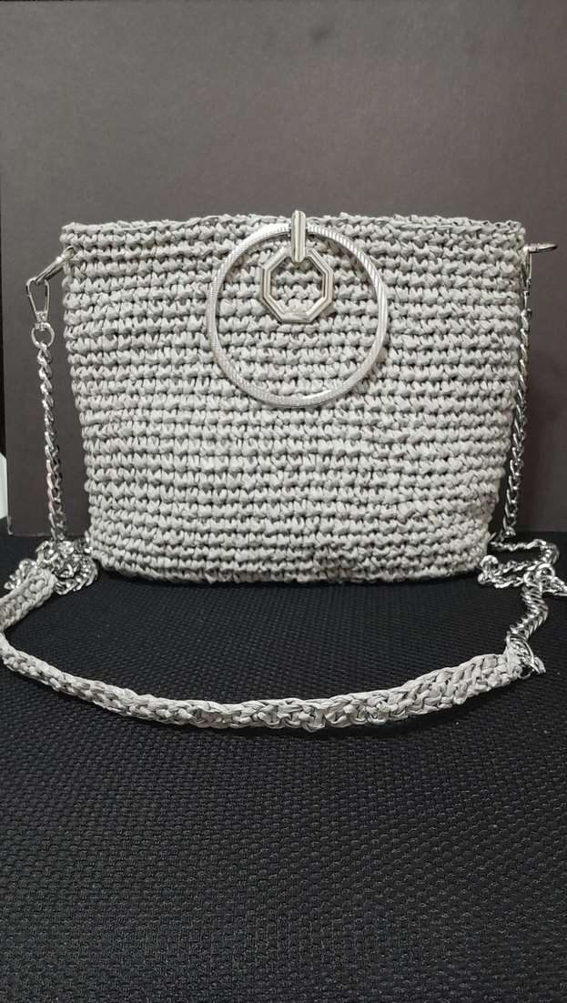 Gri Zincir Detaylı Örgü Kadın Çanta
