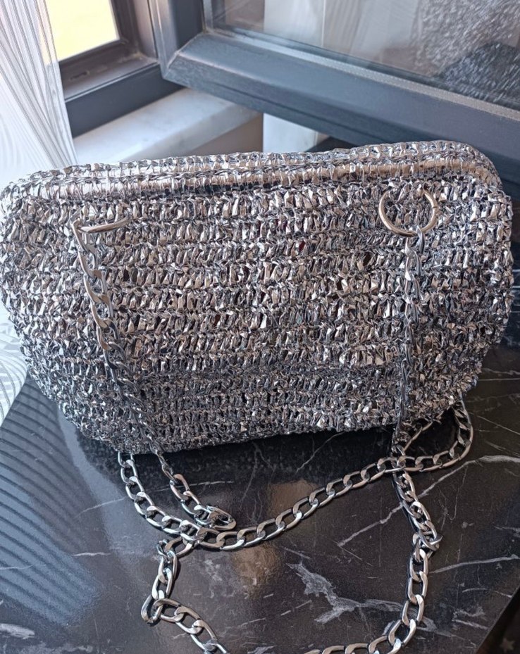 Gri Zincir Detaylı Örgü Kadın Portföy Çanta